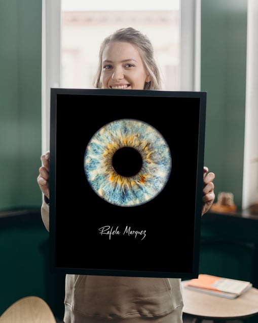 Transforme a foto da sua íris em uma obra de arte única para decorar sua casa ou até mesmo presentear alguém especial.